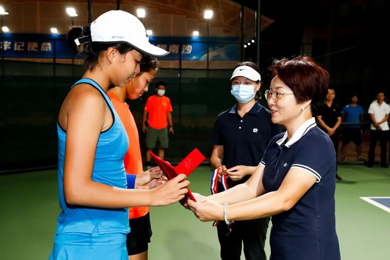 广州南沙区文化广电旅游体育局局长鲁辉女士、体育发展有限公司董事长邱燕山先生出席颁奖仪式,并为连战两天笑到最后的单打冠亚军选手颁奖。