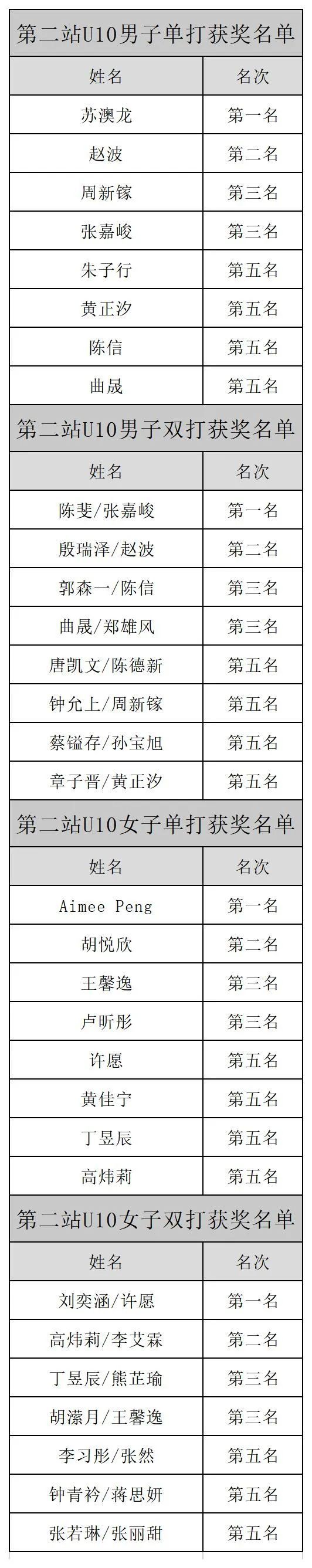苏澳龙、Aimee Peng赢得U10男女单打金牌